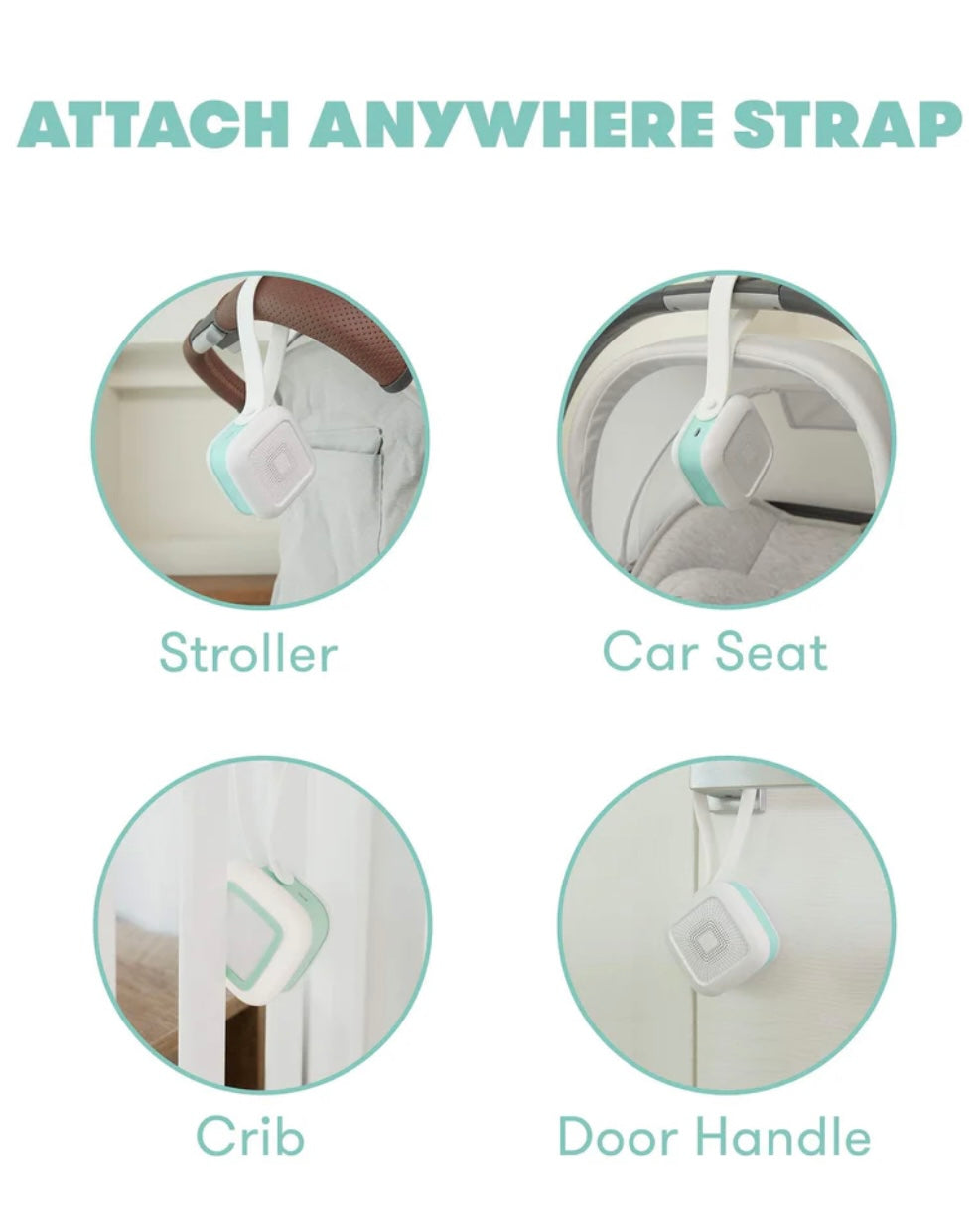 - ADJUSTABLE STRAP: Attach-anywhere strap hooks on strollers, car seats, cribs + more